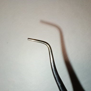 Ponta: Duas pontas ativas, uma arredondada e outra achatada, adaptadas para diferentes áreas da cavidade.