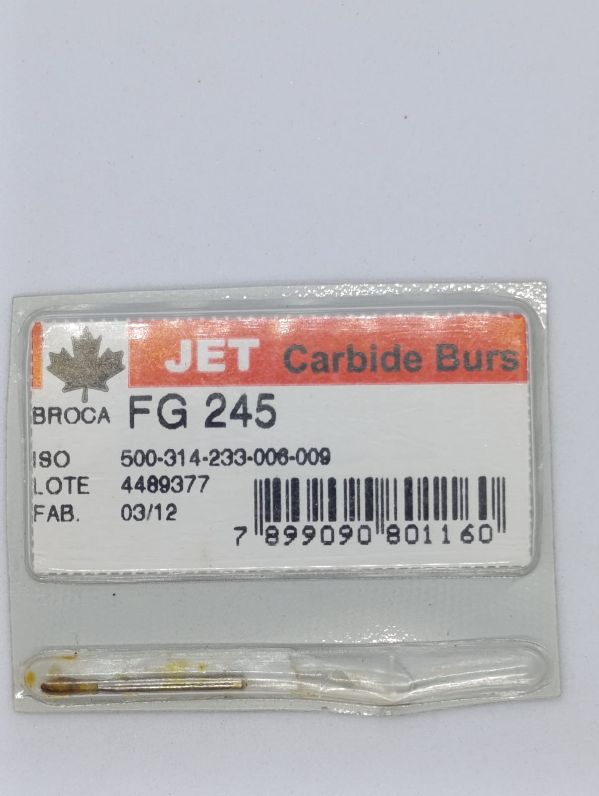 A Broca Carbide FG 245 da JET é indicada para o preparo cavitário, remoção de tecido cariado e modelagem de paredes internas da cavidade. Fabricada em carboneto de tungstênio, proporciona alta durabilidade, corte eficiente e mínima vibração, sendo ideal para uso em turbinas odontológicas de alta rotação (FG – Friction Grip).