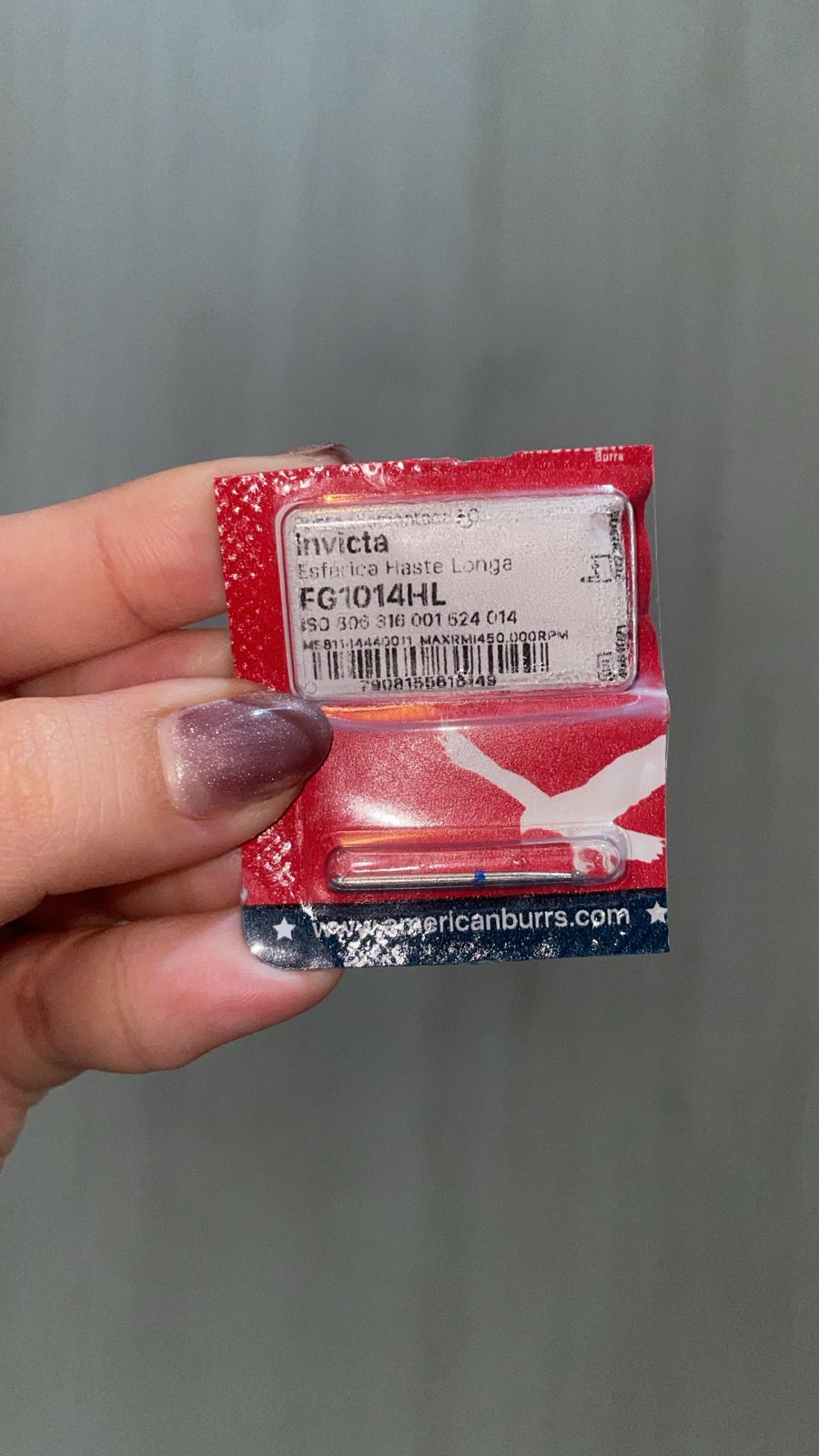 Broca FG 1014HL indicada para procedimentos restauradores em alta rotação, especialmente para acabamento fino e definição de detalhes em preparos cavitários.
