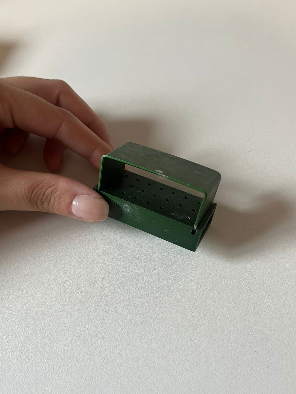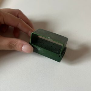 ALT TEXT: broqueiro verde odontológico para organização de brocas
