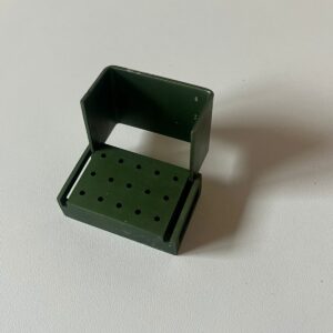 O broqueiro verde odontológico é um suporte utilizado para armazenar brocas odontológicas de forma organizada. Geralmente fabricado em plástico resistente ou alumínio com tampa, ele possui perfurações que permitem encaixar as brocas, mantendo-as alinhadas e prontas para uso.