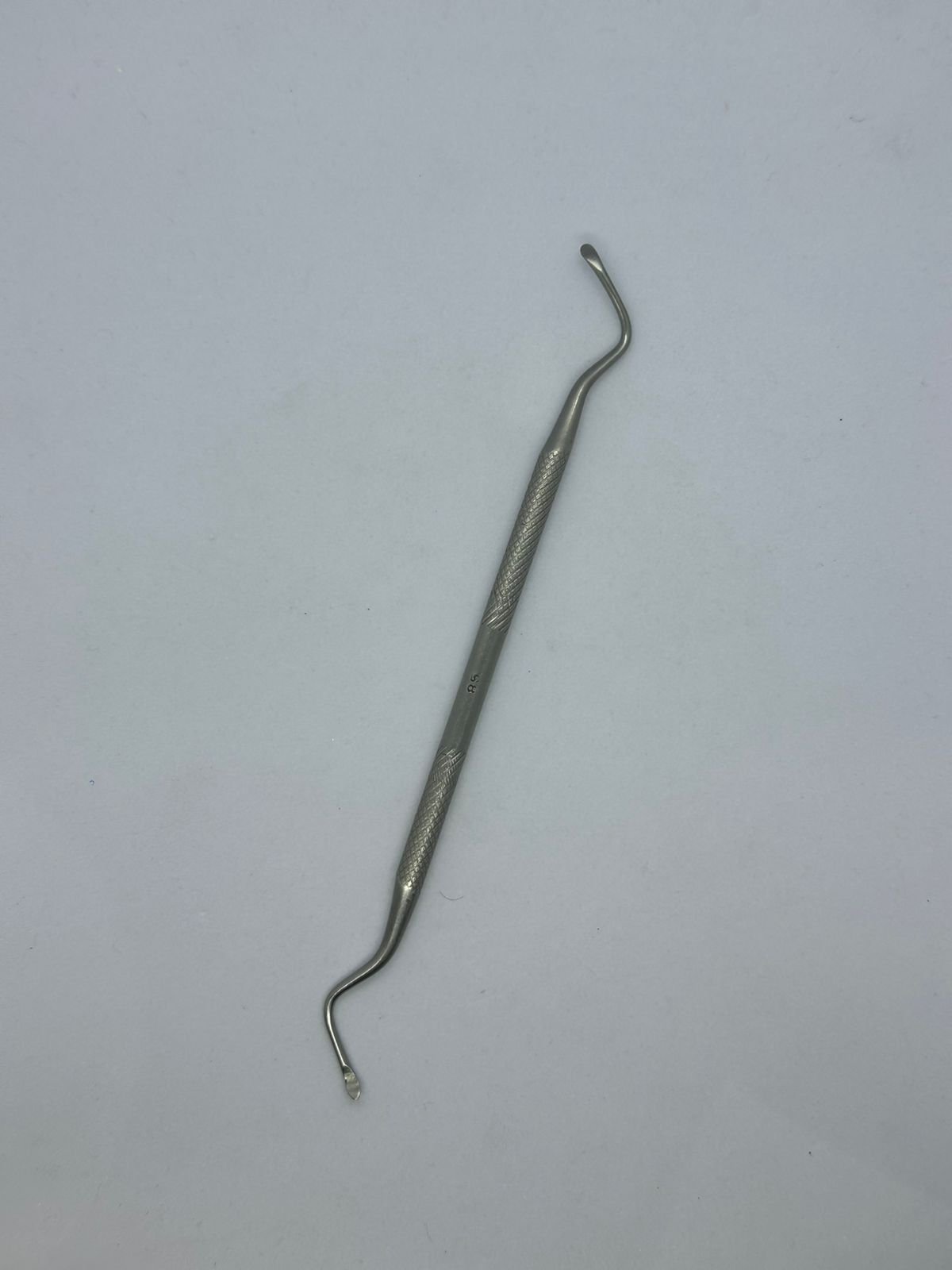 A Cureta de Lucas Nº 85 é um instrumento cirúrgico odontológico utilizado para remoção de tecidos de granulação, restos de ligamento periodontal e limpeza de alvéolos após extrações dentárias. Suas extremidades ativas são em formato de colher afilada e levemente curvas, permitindo acesso eficiente a diferentes áreas da cavidade alveolar.