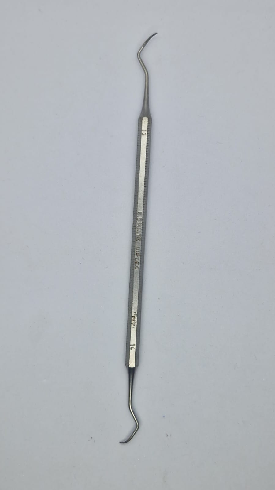 Possui duas extremidades ativas curvas e espelhadas, indicadas para uso em dentes posteriores. É amplamente utilizada por periodontistas e clínicos gerais que buscam excelência em procedimentos de raspagem e alisamento radicular.