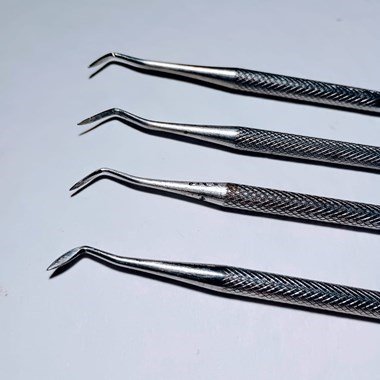Ponta: Duas pontas ativas finamente afiadas e simétricas, projetadas para esculpir e contornar áreas anatômicas com precisão.