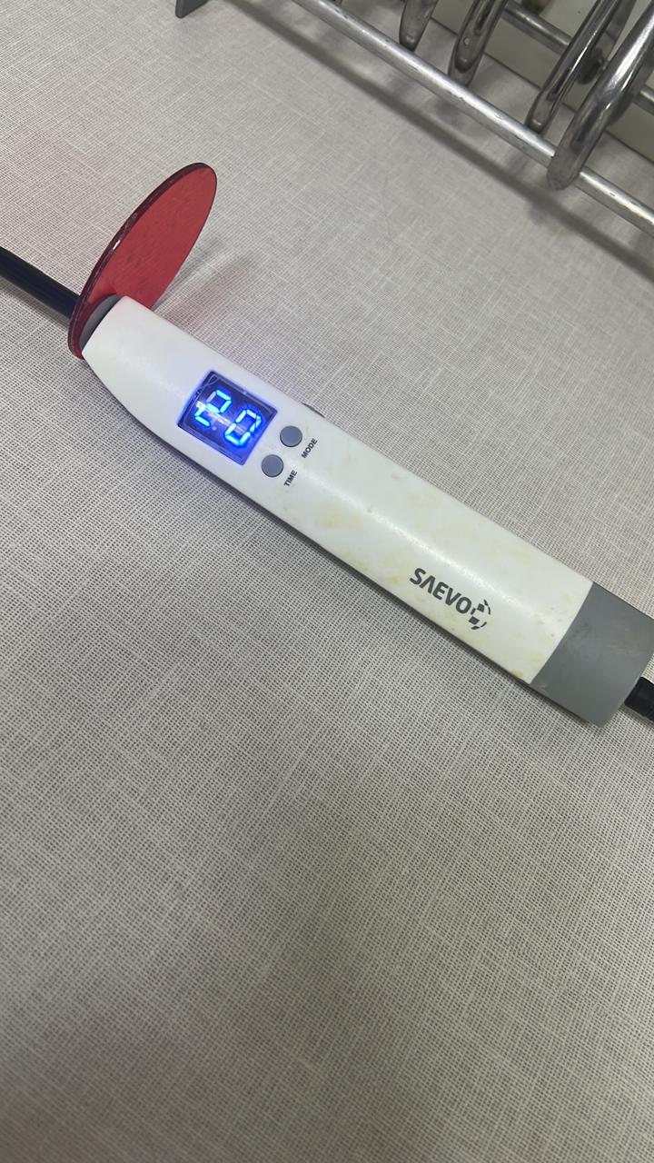 Fotopolimerizador Saevo, equipamento odontológico de alta performance utilizado para a polimerização de resinas compostas e materiais fotoativáveis.