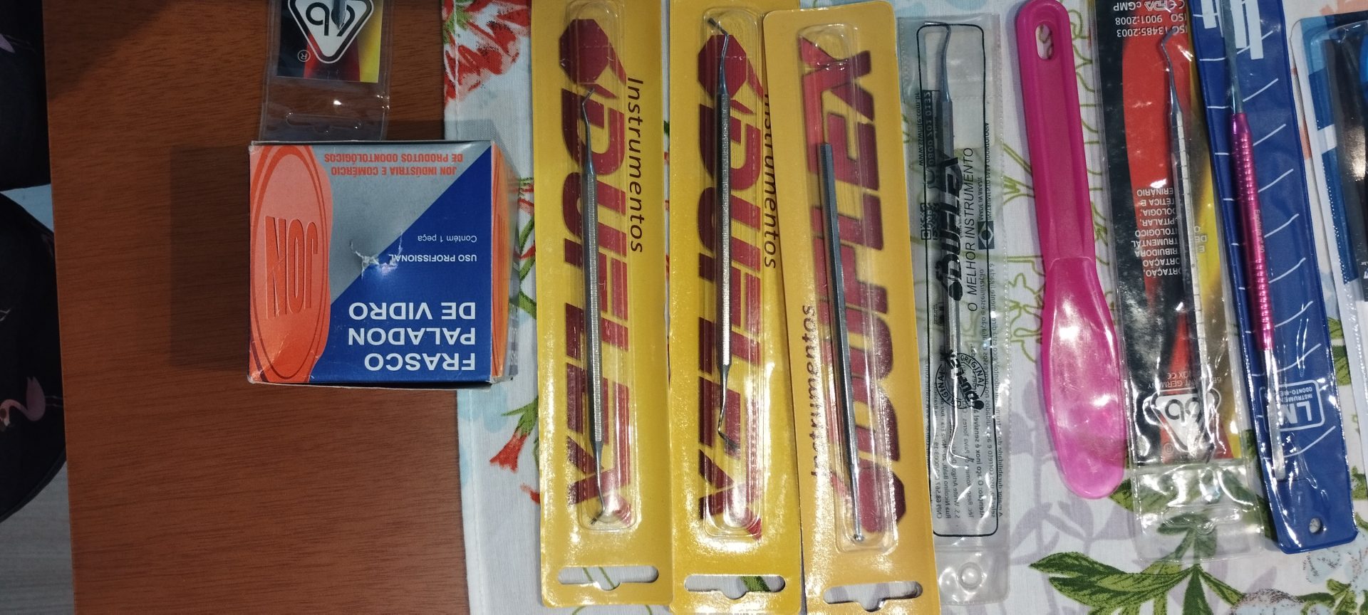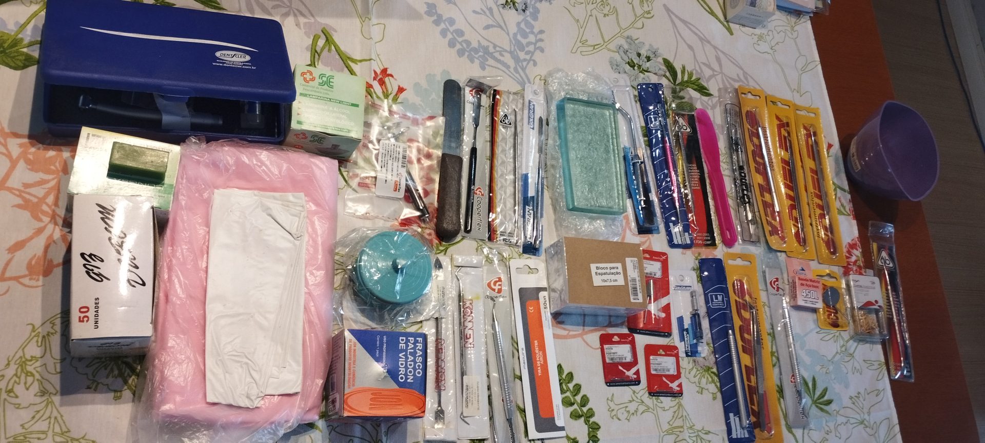 Mais de 30 instrumentos odontológicos incluídos no kit.
