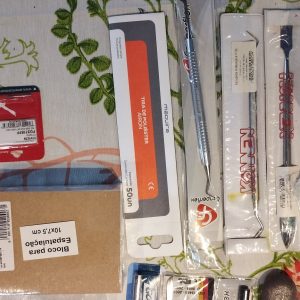 Kit de materiais odontológicos para uso profissional. Inclui diversos instrumentos de alta qualidade e durabilidade para garantir um trabalho preciso e eficiente. Vendo individual, entrar em contato no chat.