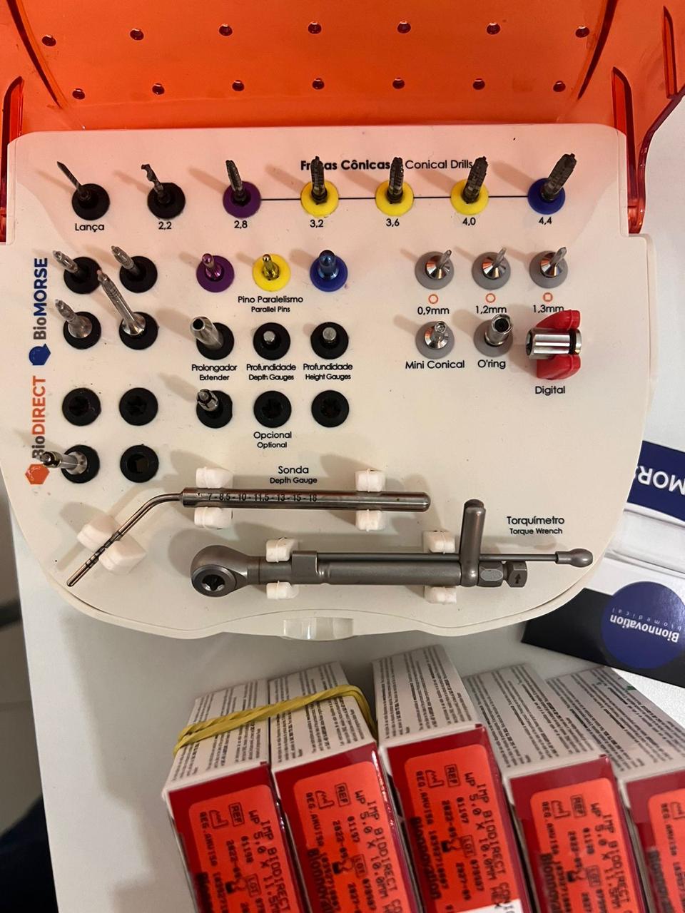 O Kit Cirúrgico Bionnovation é um conjunto completo de instrumentais e componentes para procedimentos cirúrgicos de enxerto e regeneração óssea, projetado para oferecer precisão, segurança e praticidade no consultório ou centro cirúrgico. Desenvolvido pela Bionnovation (especialista em regeneração óssea guiada), o kit reúne brocas helicoidais, chaves digitais, hastes e parafusos de fixação, organizados em estojo esterilizável e autoclavável.