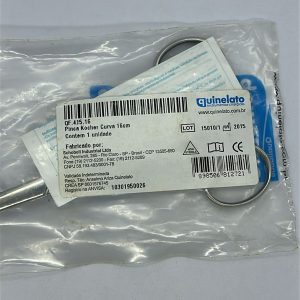 Pinça Kocher curva com trava, ideal para hemostasia e apreensão de tecidos mais firmes. Acabamento preciso e resistente.