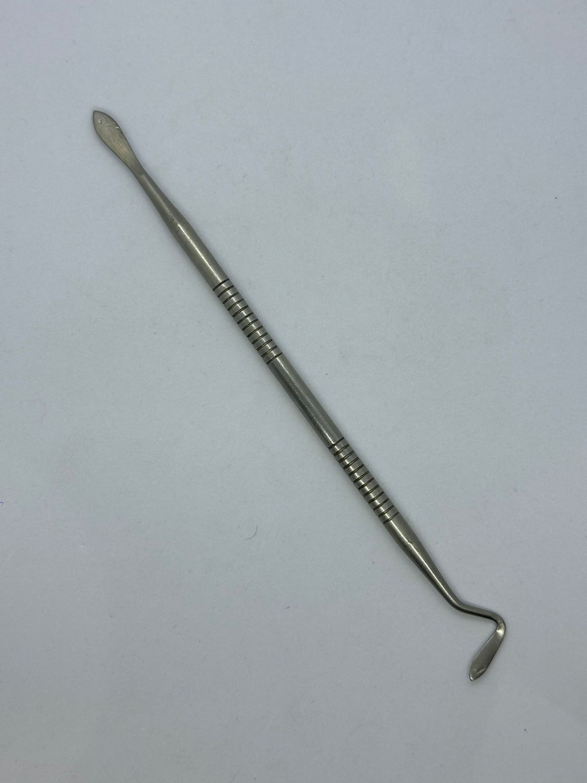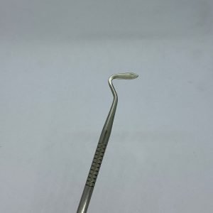 Instrumento cirúrgico fino e cortante usado para seccionar fibras periodontais e facilitar exodontias, especialmente em dentes com retenção.